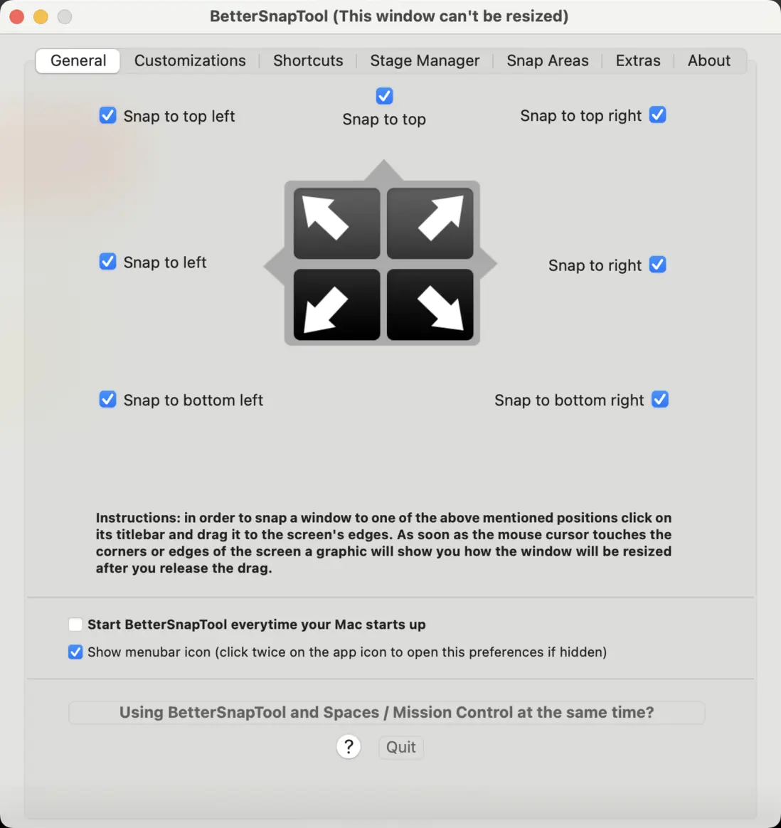 一款小而美的工具,用來快速調整你的窗口,比如當前窗口在兩個顯示屏直接切換;全屏,左右分屏等等