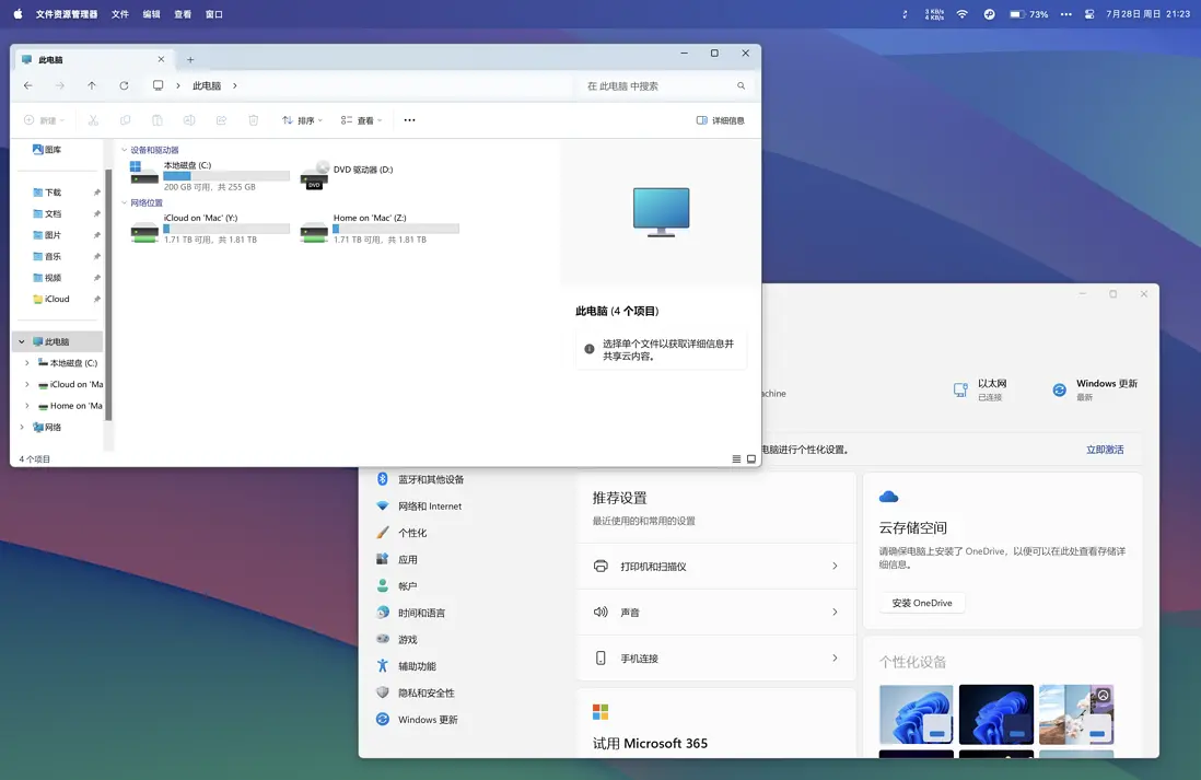 融合模式,應用和直接使用 mac 的應用沒任何差別