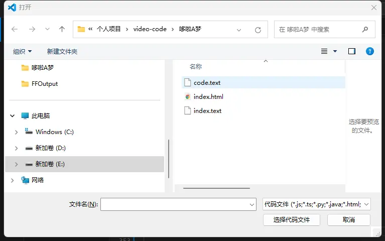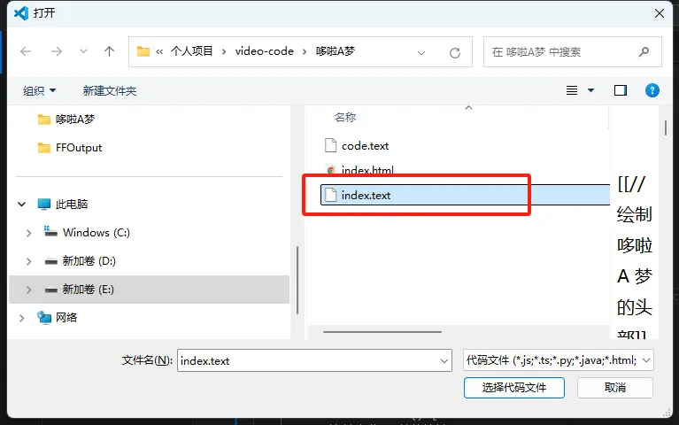 - (4)在彈出的文件選擇框中選擇需要插入的代碼文件,這裏選擇我們前面準備的index.txt