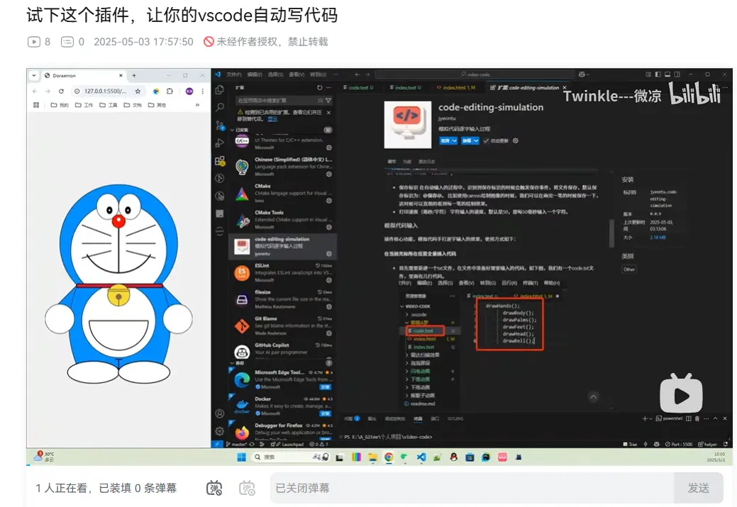 如上圖,看着是和手打一樣逐字輸入的效果,但其實是通過vscode插件來自動輸入的,可以用於視頻錄製時重現代碼實現過程。
