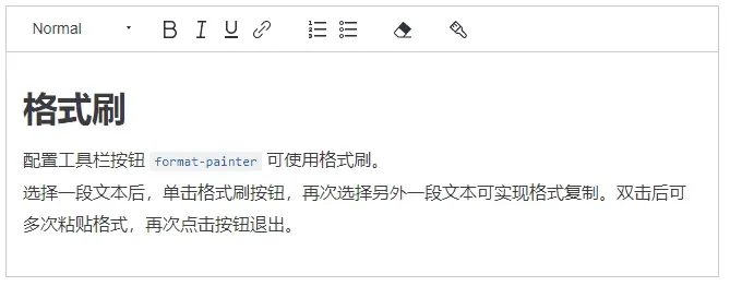 使用起來很方便,只需要配置下工具欄,增加 format-painter 格式即可。