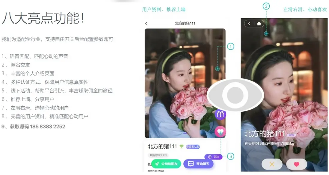 2、基於機器學習算法,系統可綜合用户填寫的年齡、職業、興趣標籤等顯性信息,以及瀏覽行為、聊天記錄等隱性數據,生成動態匹配模型。系統可通過分析用户對"線下活動"功能的參與頻次,可優先推薦同頻社交對象,提升匹配精準度。紅娘系統賦能