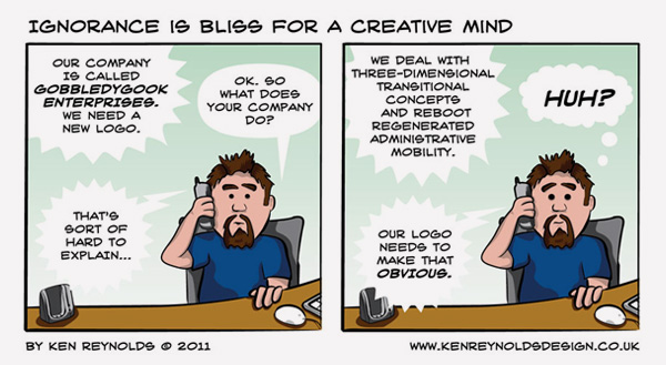 Think of something you have no deep knowledge of. For me, it’s sailing. If I were asked to design a logo for a company that makes sails, I would be quite stumped on where to start. This is the fight or flight moment of the design process. You can either dig in and find a solution or give up, citing lack of market knowledge. The latter is not a good enough excuse. For starters, your client has enough knowledge of the market for both of you. It’s up to you to get it out of them.