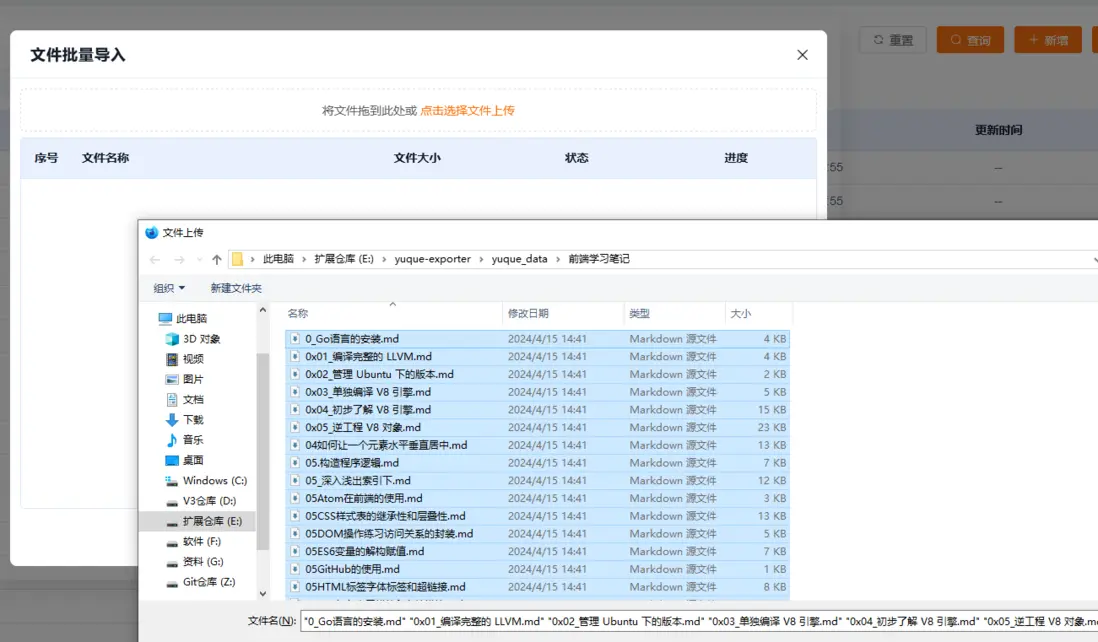 目前的是為了實現批量導入md文件,發佈文章。這樣就不用自己一篇一篇同步文章了。一次可以同步幾千篇文章。
