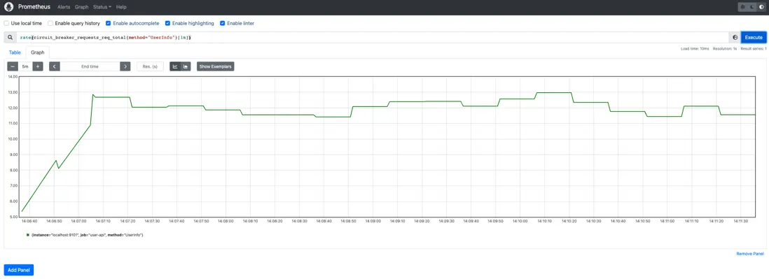 googleBreaker熔斷器的正常請求率如下圖所示: