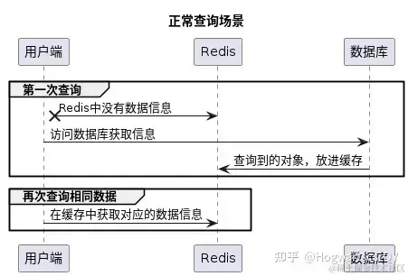 在正常的請求過程中,如果在緩存(Redis)中沒有查到信息,則直接向數據庫進行查詢,查詢到之後,數據庫會講數據信息同步到緩存(Redis)中,以便下次查詢。