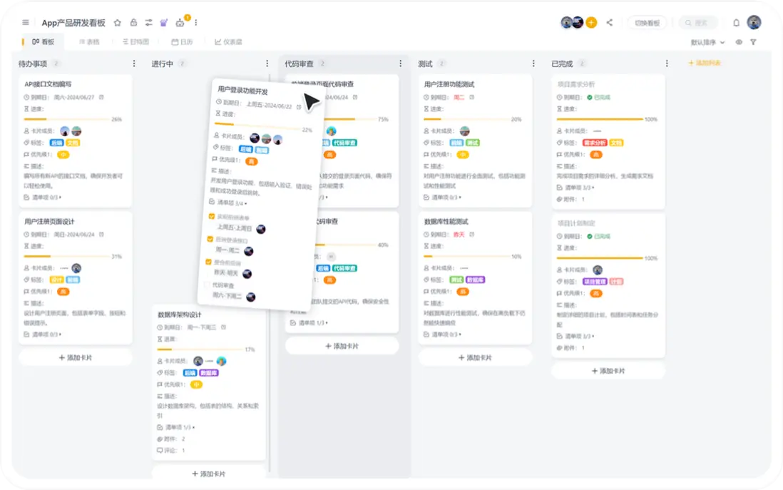 板栗看板是一款高效的可視化項目管理工具,它基於“看板管理法”,通過直觀的界面將任務以卡片形式展示,用户可以輕鬆地將任務從“待辦”、“進行中”到“已完成”等不同狀態進行拖拽,實時更新任務進度。
