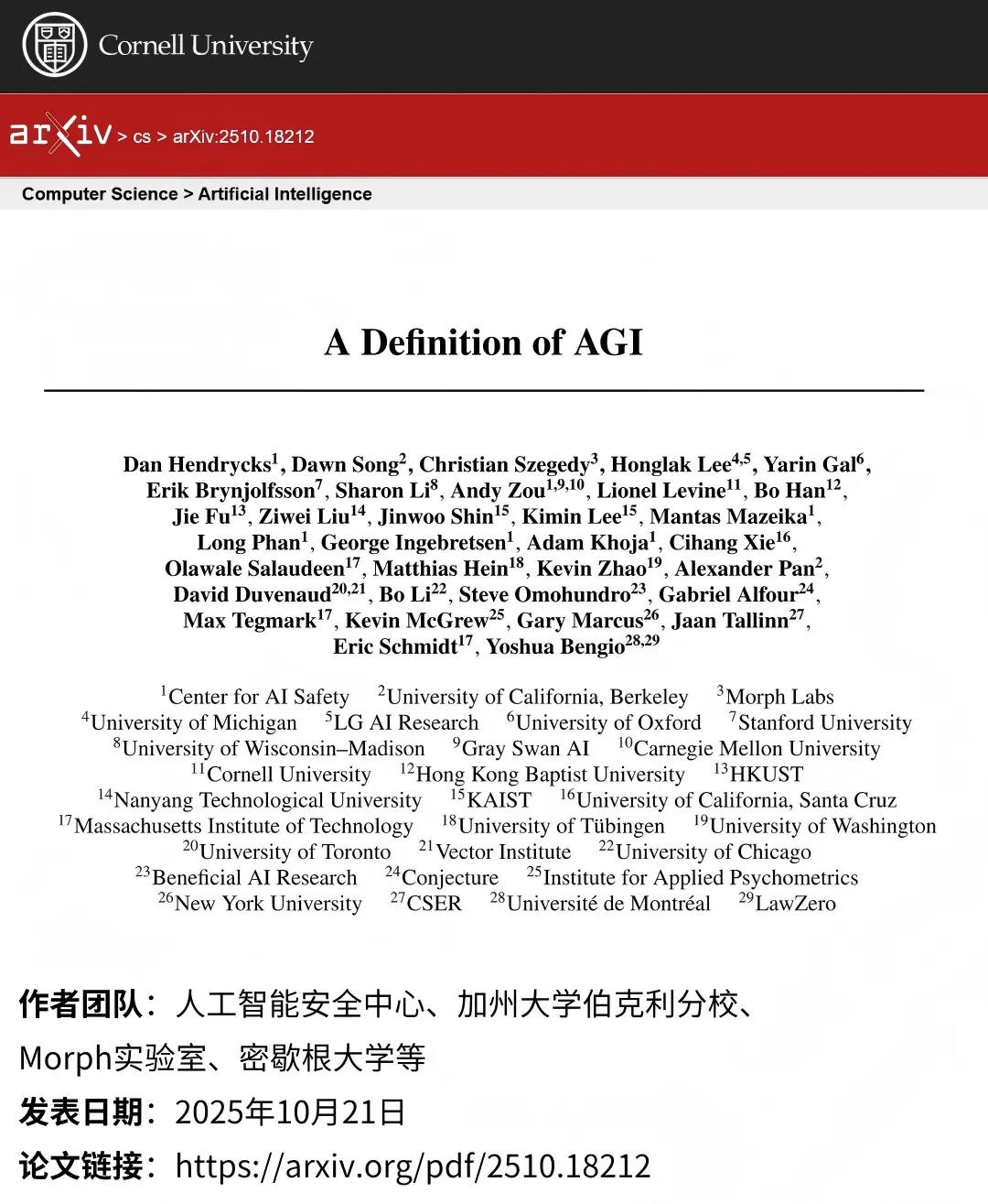 本文旨在提出一個全面、可量化的框架,以澄清AGI的定義,並精確測量AI系統在通用認知能力上與人類的差距。其核心目標是將AGI操作化定義為“能夠匹配或超越一位受過良好教育的成年人的認知廣度和熟練度”,從而為評估AI系統提供一個堅實、統一的基準。