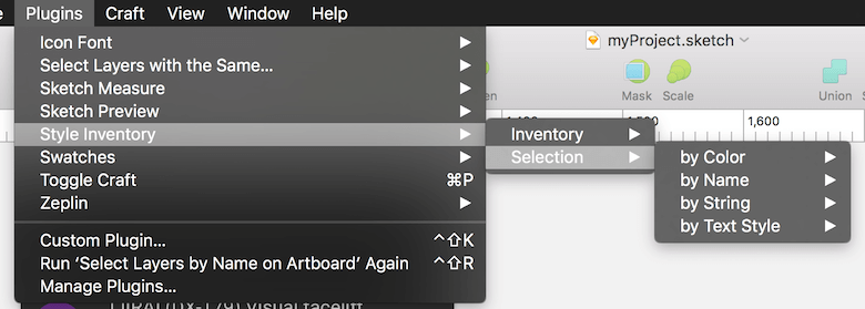 As mentioned, the projects I’m currently involved in come with a light and a dark theme. Having to provide designs for both themes and for each screen can be tedious and time-consuming. However, using Sketch’s Style Inventory plugin, I can select all items in all of my artboards by name or by current color or by another property, and then batch-adjust them as I like.