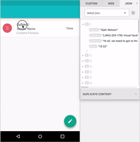 Craft actually solved my aforementioned problem of loading data into my designs. For the email app I’m working on, I can now create a list of (actual or fictitious) email addresses, subjects, content strings and more in a spreadsheet. I only need to make sure that every spreadsheet column’s first entry serves as the title (for example, “Content”).