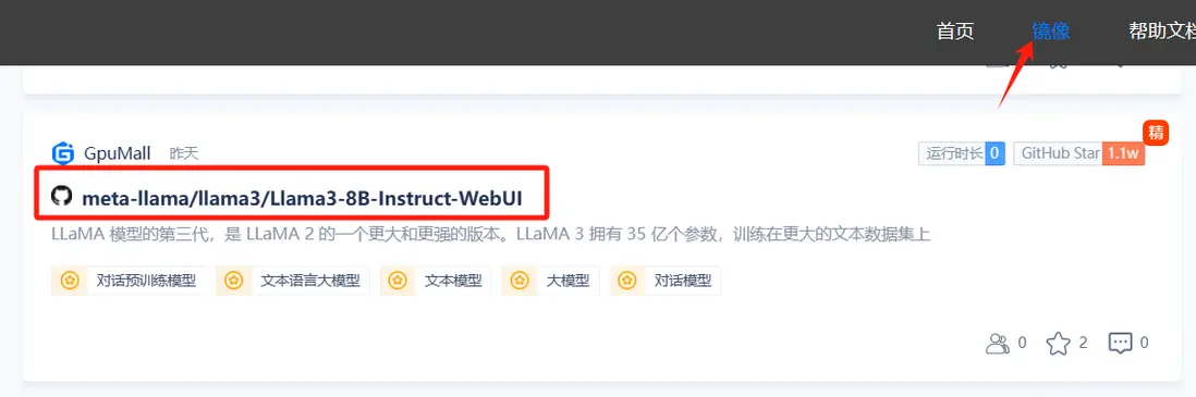 複製下方鏈接至瀏覽器,直達鏡像社區一鍵體驗LIama3!https://gpumall.com/image-list