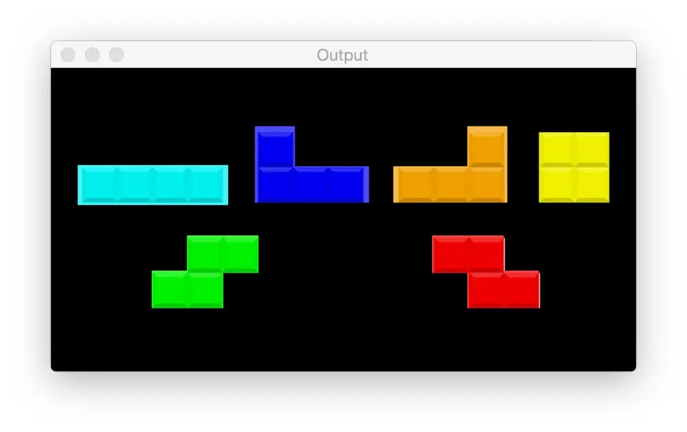 Figure 19:Prior to finding contours, 數俄羅斯方塊前we threshold the grayscale image先將圖片二值化. We performed a binary inverse threshold so that the foreground shapes become white while the background becomes black.
