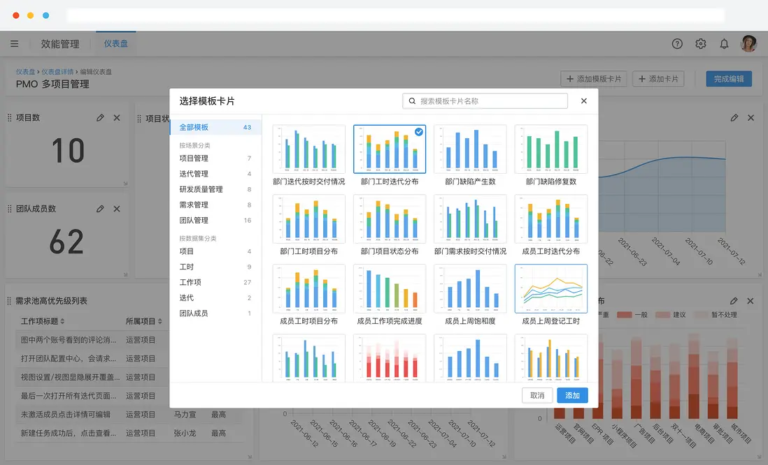 工具實踐:閉環的關鍵是“用同一套口徑持續看”。如果平台能提供可配置的度量視圖(按項目/迭代/類型/負責人等維度),覆盤會更像“經營”,而不是“講故事”。以 ONES Performance 為例,其提供多種報表形態並支持自定義數據範圍與維度,便於做持續度量。