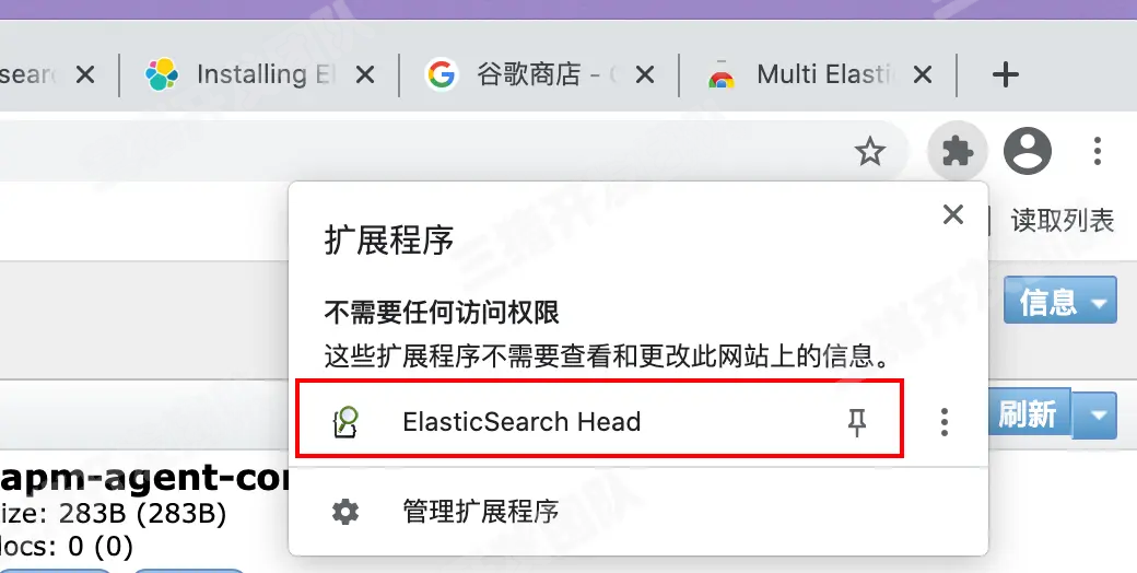 點擊添加至chrome,即可在擴展程序找到打開elasticsearch head。