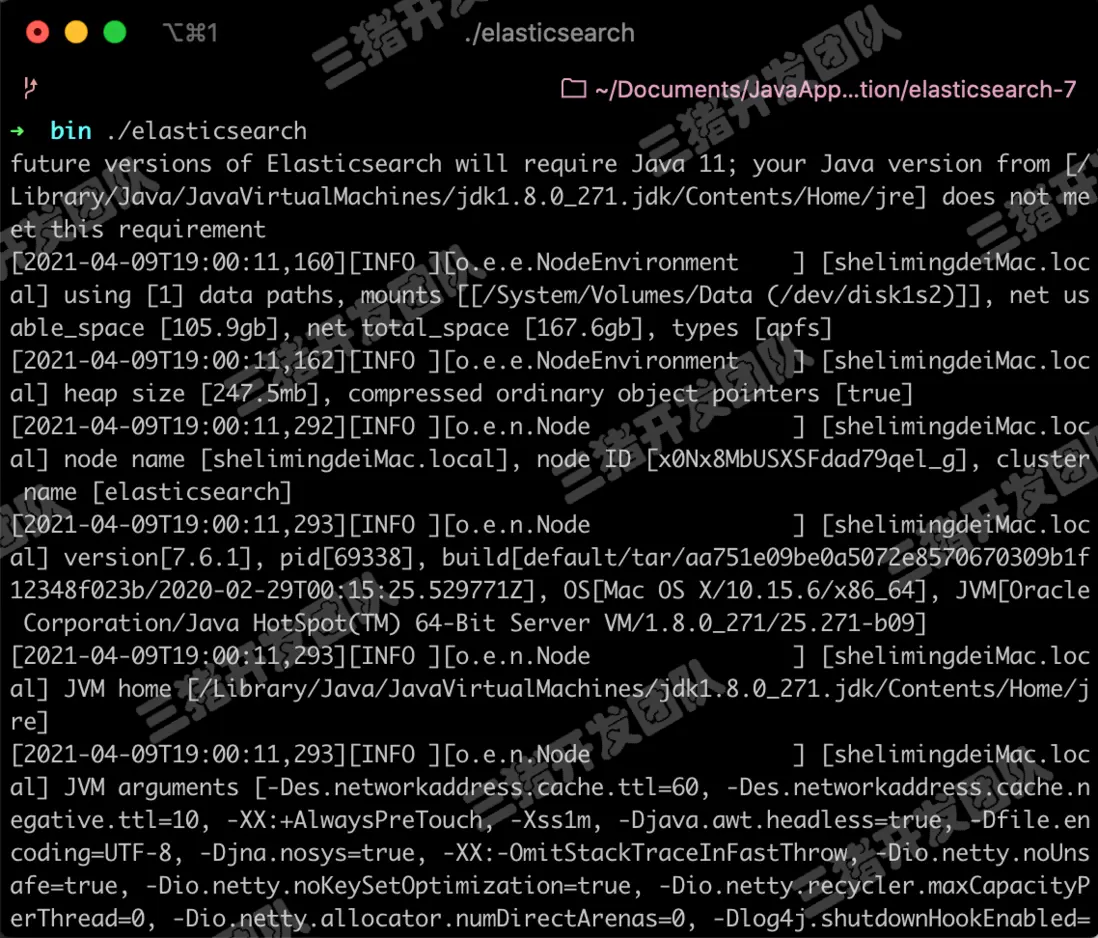 在elasticsearch-7.6.1/config/elasticsearch.yml配置文件加上xpack.ml.enabled: false;則可進入到bin目錄,./elasticsearch啓動Elaticsearch。