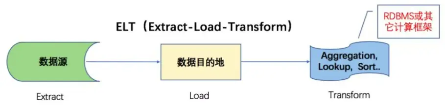 (2)​數據處理位置​:“T”(轉換)發生在加載到目標存儲之後,利用目標系統的計算能力。