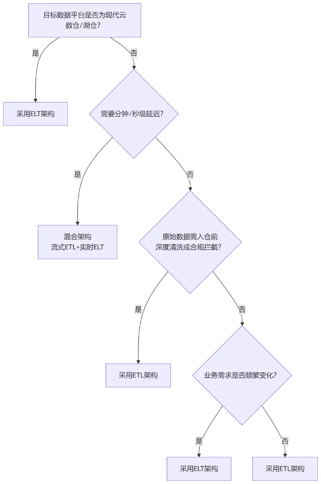 ELT已經成為雲數倉時代的主要範式​​,通過目標平台內轉換,實現計算資源按需伸縮,滿足原生適配實時與非結構化數據處理需求;而​​ETL的價值則聚焦於跨環境數據編排、敏感數據預清洗與混合雲集成場景​​,核心角色轉向智能調度層。但​​​技術決策並非二選一​​,而是基於企業具體數據資產、團隊技能與基礎設施現狀的架構重組。​2025年的最優解,正走向​以雲數倉的ELT能力為主體,針對敏感數據攔截、流數據預處理的ETL模塊為補充的混合架構。​這種混合模式在保障安全合規的同時,最大化釋放了雲平台的彈性計算效能。