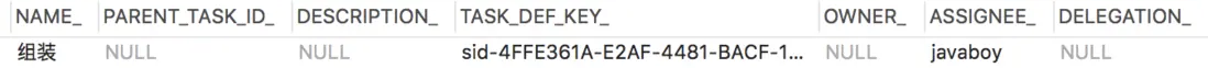 流程啓動之後,我們在 ACT_RU_TASK 表中可以看到,該 zhangsan 審批了,如下: