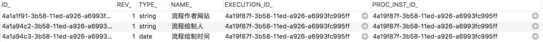 接下來,我們可以通過如下方式來查詢 ACT_RU_VARIABLE 表中的數據: