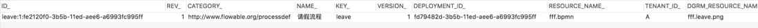 當這個流程圖部署成功之後,我們在流程定義表 ACT_RE_PROCDEF 中可以看到剛剛設置的租户 ID: