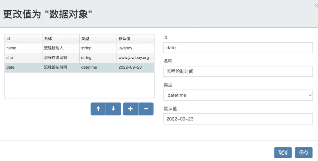IDEA 上的 Flowable 流程圖繪製插件中還不能添加 dataObject 屬性,這個需要我們去 flowable-ui 中去添加。