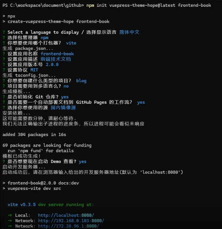 創建 VuePress 項目使用的 nodejs 版本是 v18.20.3。