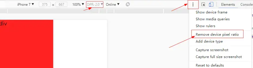 可以在Chorme移動端DEBUG下開啓顯示dpr,也可以在console中打印window.devicePixelRatio查看