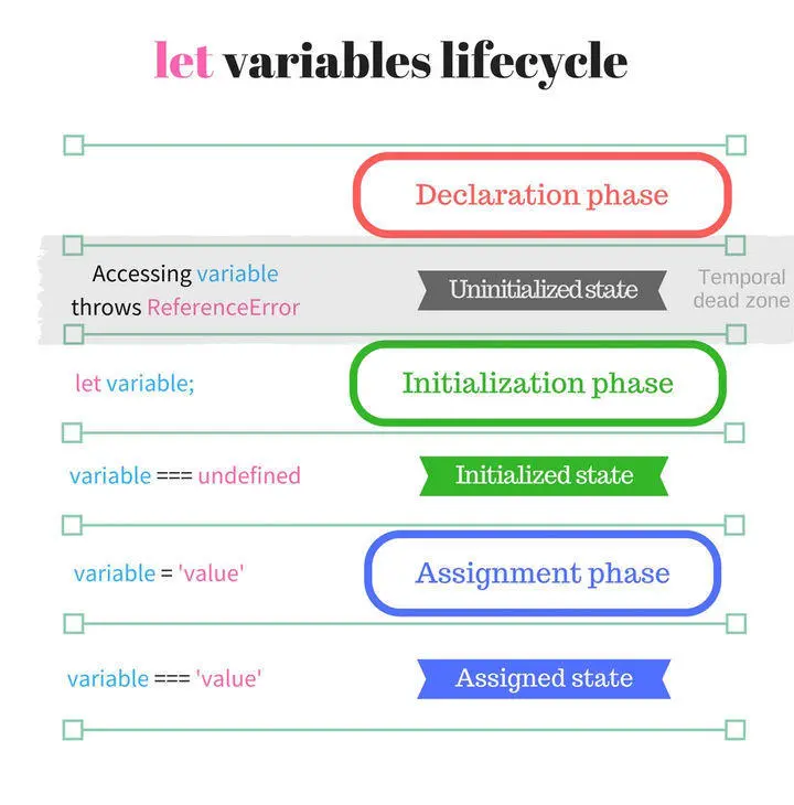 在 ES6 之前,JavaScript 中只存在着函數作用域;而在 ES6 中,JavaScript 引入了 let、const 等變量聲明關鍵字與塊級作用域,在不同作用域下變量與函數的提升表現也是不一致的。在 JavaScript 中,所有綁定的聲明會在控制流到達它們出現的作用域時被初始化;這裏的作用域其實就是所謂的執行上下文(Execution Context),每個執行上下文分為內存分配(Memory Creation Phase)與執行(Execution)這兩個階段。在執行上下文的內存分配階段會進行變量創建,即開始進入了變量的生命週期;變量的生命週期包含了聲明(Declaration phase)、初始化(Initialization phase)與賦值(Assignment phase)過程這三個過程。