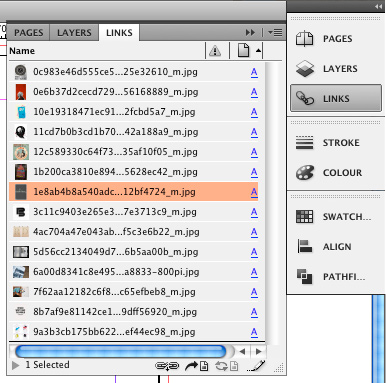 You can update placed images or check their locations directly from the Links palette. To bring up the Links menu, select the name of the image and click on the arrow to the right.