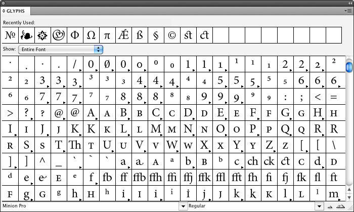 These are worth mentioning. With them, you can explore all of the characters in a font, which is handy when you’re looking for a particular symbol or working in a language that has accented characters.
