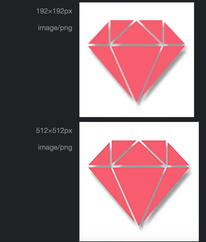 由上至下,依次是 PWA 應用的名稱、描述、圖標文件、banner顏色、顯示方式、開始頁面的鏈接和 PWA 的作用域。為此我們需要提供兩張不同分辨率的站點圖標文件: