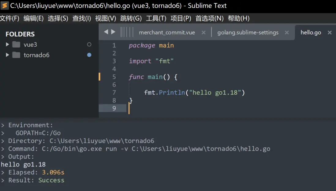 編寫Go lang代碼也可以選擇輕量編輯器Sublime,是的,一律千篇的Goland多多少少有點審美疲勞,關於Sublime 4的安裝,請移步:輕盈瀟灑卓然不羣,敏捷編輯器Sublime text 4中文配置Python3開發運行代碼環境(Win11+M1 mac)這裏不再贅述。