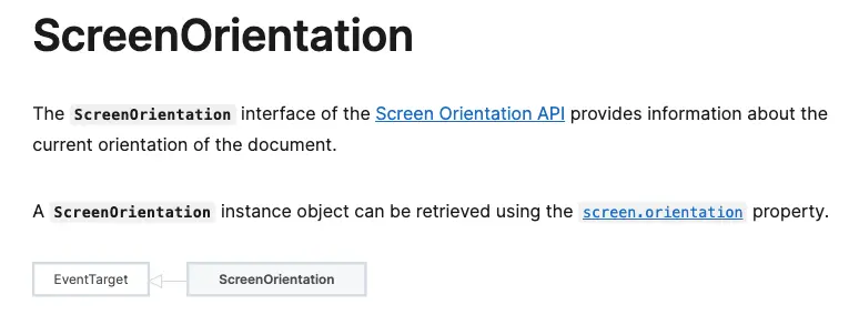 - ✧文檔地址:https://developer.mozilla.org/en-US/docs/Web/API/ScreenOrientation