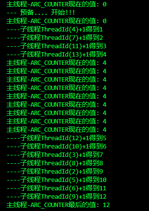 //在主線程中循環打印ARC_COUNTER的值,直到其值達到10