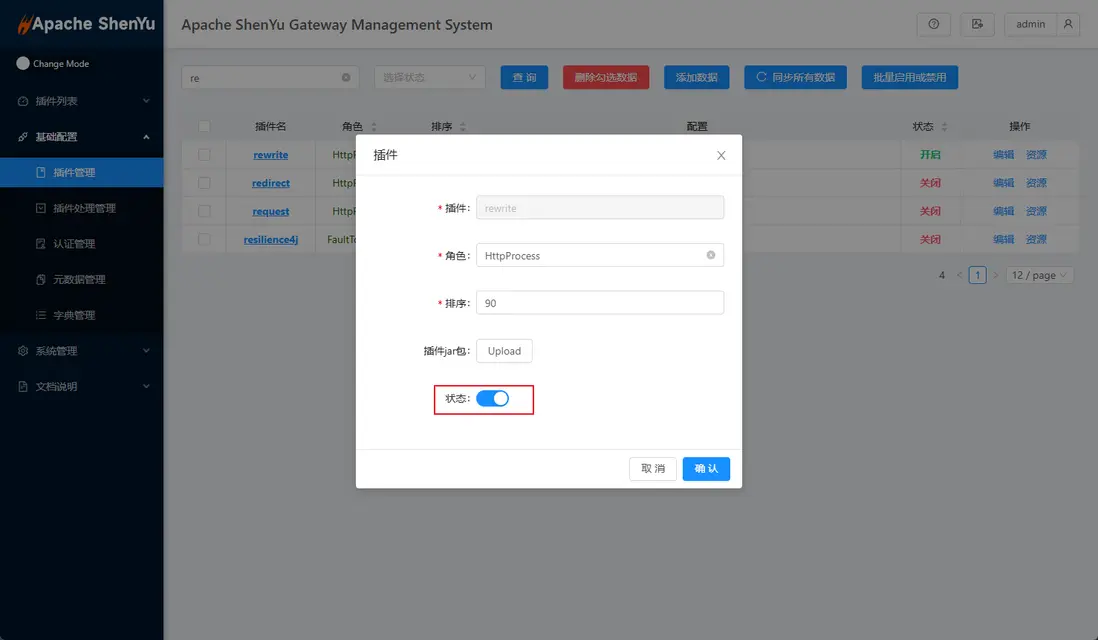 shenyu-admin的可視化管理頁面了,默認賬號密碼(admin:123456),訪問地址:http://192.168.3.101:9095