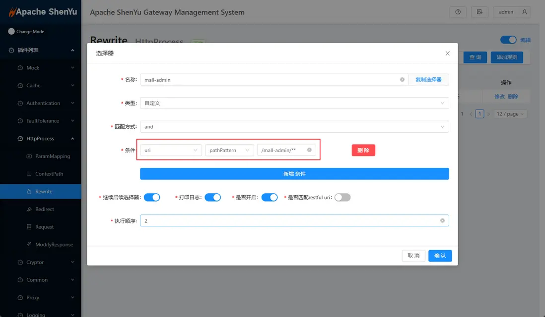 插件列表->HttpProcess->Rewrite中添加選擇器;