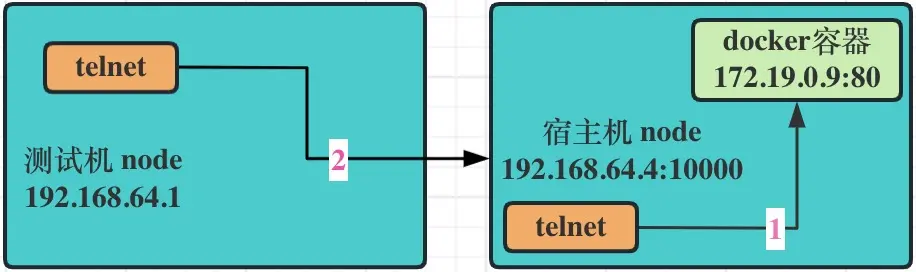 亦即宿主機的 10000 端口映射給了容器的 80 端口。圖中有兩種測試場景,分別是: