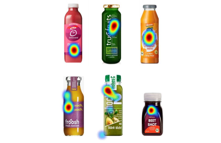 In marketing, eye-tracking is used to test advertising, product placement, and packaging, such as this use case that shows the visual attention that different smoothie brands receive from shoppers: