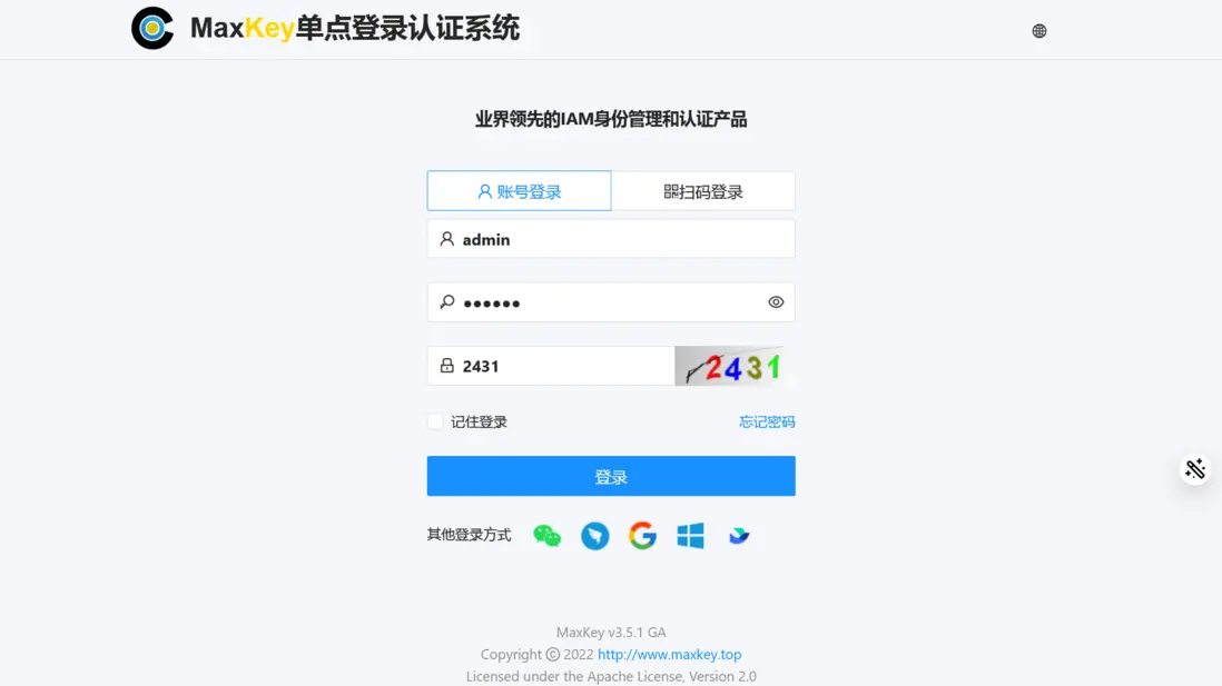 MaxKey單點登錄認證系統,諧音馬克思的鑰匙寓意是最大鑰匙,是業界領先的IAM身份管理和認證產品,支持OAuth 2.x/OpenID Connect、SAML 2.0、JWT、CAS、SCIM等標準協議,提供安全、標準和開放的用户身份管理(IDM)、身份認證(AM)、單點登錄(SSO)、RBAC權限管理和資源管理等。