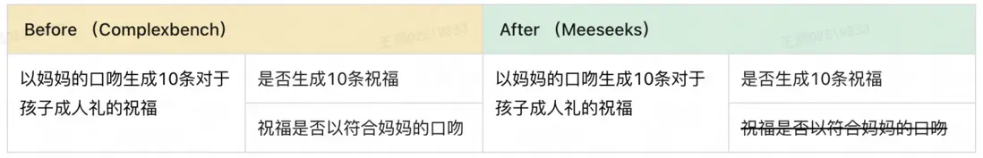 再者是 杜絕主觀評測,摒棄瞭如“以媽媽的口吻”這類模糊指令,所有評測項均為客觀可判定標準,保證了結果的一致性。