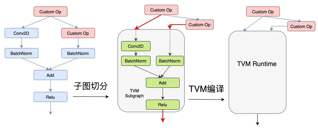 TensorFlow模型中過多的不被TVM支持的算子會導致TF-TVM切圖零碎,影響最終的優化效果。為了讓TF-TVM切圖儘量大且完整,以及讓TVM優化過程中的融合力度更大,我們對模型中的一些複雜結構進行檢測,替換為執行更高效或更易於融合的等價結構。