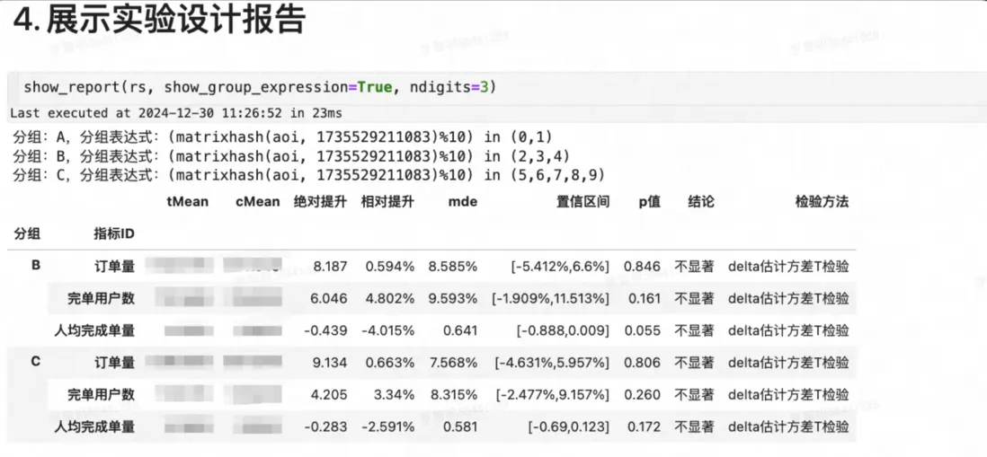 - 業務可自行根據MDE、P值來判斷該次分組是否達到實驗開展的前提條件,如果達到滿足實驗條件,即可使用最終分組表達式來開展實驗。