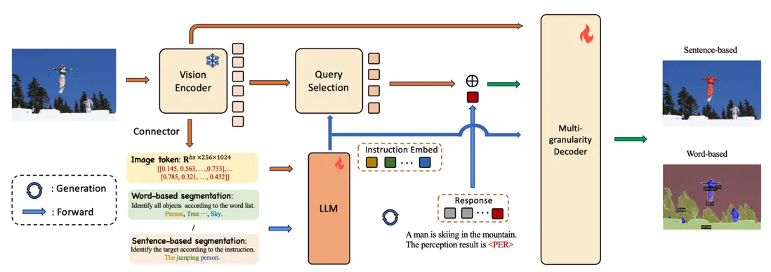 針對這一挑戰,我們提出了MVP-LM——一種融合了視覺大語言模型的多粒度、多功能感知框架。我們的框架旨在於單一架構中整合基於詞語和基於句子的感知任務,支持框及掩碼的預測。MVP-LM配備了創新的多粒度解碼器,並結合了受鏈式思維啓發的數據集統一策略,使其能夠在包括全景分割、檢測、定位和指代表達分割等在內的廣泛任務上實現無縫的有監督微調。此外,我們還提出了一種查詢混合增強策略,旨在充分利用視覺大語言模型固有的解碼與生成能力。在基於詞語和基於句子的感知任務的多個基準測試中,我們進行了大量實驗,結果驗證了我們框架的有效性。