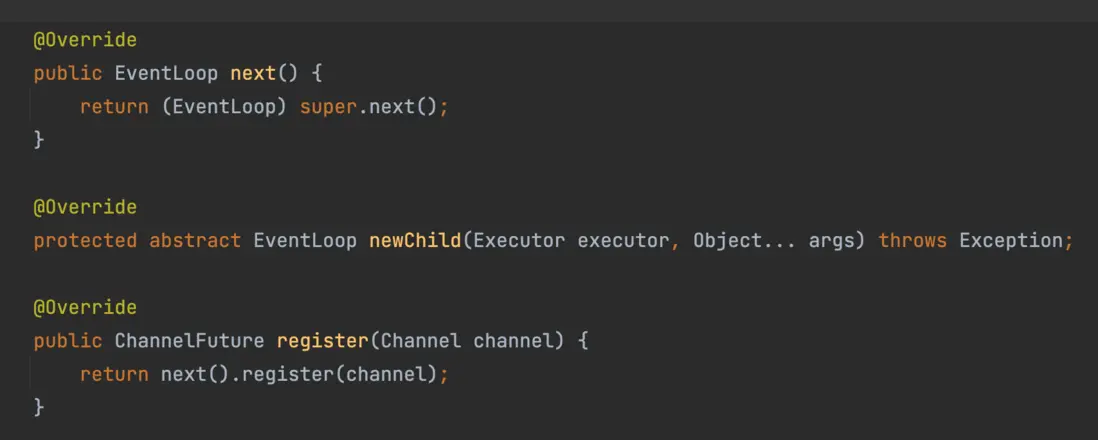 1.1.1 我們通過 MultithreadEventLoopGroup.register方法定位到next()方法。