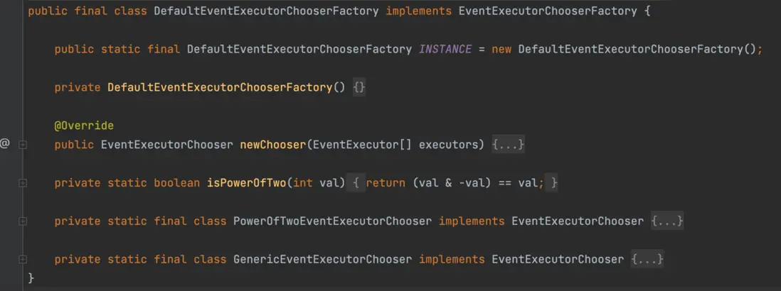 進入newChooser方法,根據傳入的executors長度是否2的指數返回不同的實現類,這裏實現了一個策略模式。為什麼要這麼做呢?我們繼續往下看