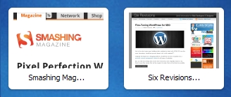 It was obvious how useful the little icons are. The chunky SitePoint blue/orange stylized “S” for example, is instantly discernible, as is the colorful Google Images “logo” (like CBS, they use a tastefully subdued serif font along with an array of bright Crayola colors). On the other hand, some sites not using the icons didn’t fare so well. Mine, for example. I got a nearly-random screenshot of my LinkedIn and Twitter contact icons, nearly useless for identifying anything. A Facebook page I visit regularly got turned into a blurry mush, as the program squished the entire page down into a barely discernible thumbnail shot. The screengrabs for Six Revisions and Smashing Magazine didn’t do so hot, either; without the text blocks on the bottom of those icons, I couldn’t easily tell what page it was (though Smashing’s logo is more discernible than Six Revisions’s). And who wants to rely on a text block to identify something?