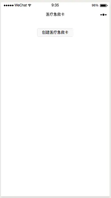 首次使用小程序,頁面將顯示一個 「創建醫療急救卡」 的按鈕,效果圖如下: