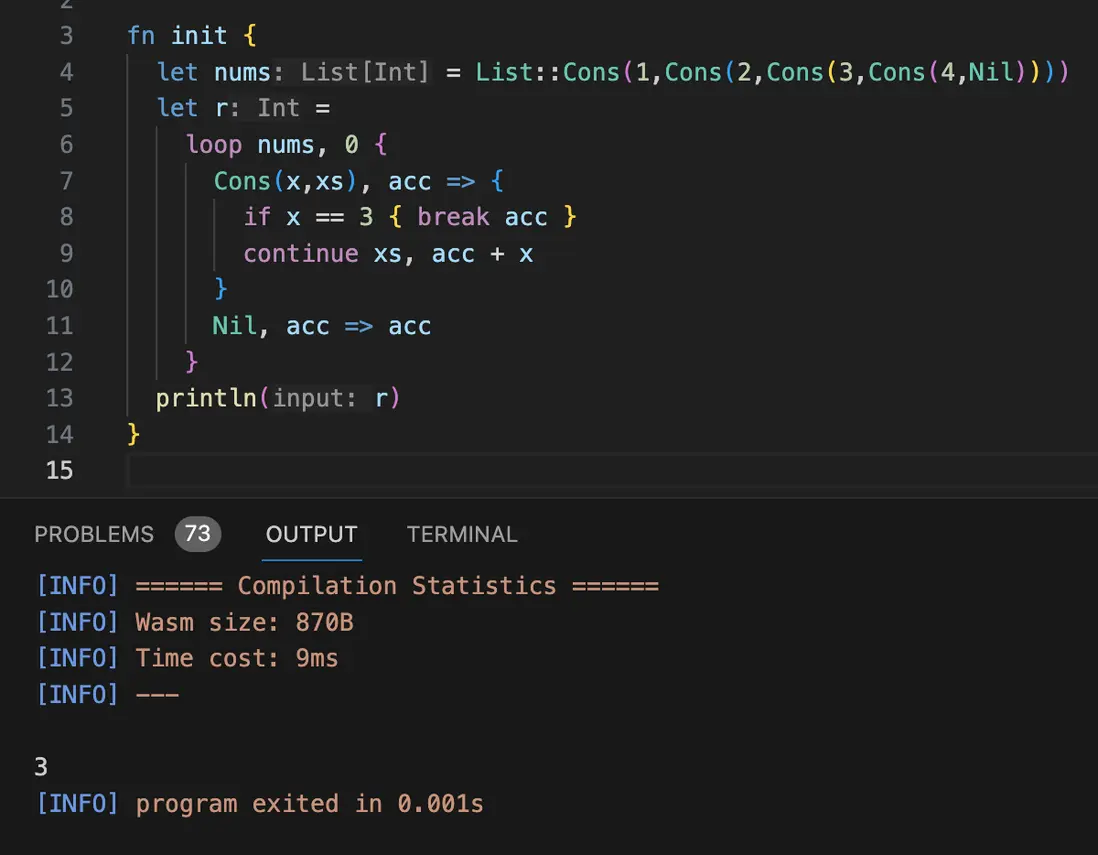 其中continue 只允許出現在尾遞歸調用的位置,loop內允許使用break提前返回一個值。