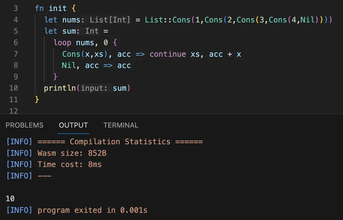 最新的安裝腳本會將標準庫下載到 ~/.moon/lib/core 目錄下。目前標準庫的內容以及相關IDE支持暫不穩定,因此構建系統默認不鏈接標準庫。對於想要提前體驗標準庫功能的開發者們,可以在 moon check|build|run|test 命令後添加 --std 選項用於鏈接標準庫到當前項目。