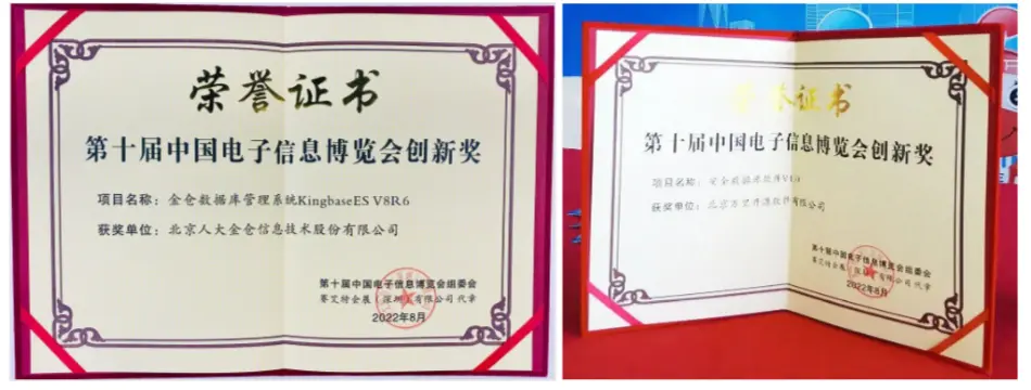 8月16日,在2022第十屆中國電子信息博覽 ( 簡稱“CITE”)期間,openGauss企業級開源數據庫一舉摘得本屆中國電子信息博覽會最高獎項金獎 (CITE 2022“金獎”)")。人大金倉 Kingbase和 萬里安全數據庫軟件 GreatDB 獲得最具價值、成長性的——“第十屆中國電子信息博覽會創新獎”獎項 (CITE 2022“創新獎”)。
